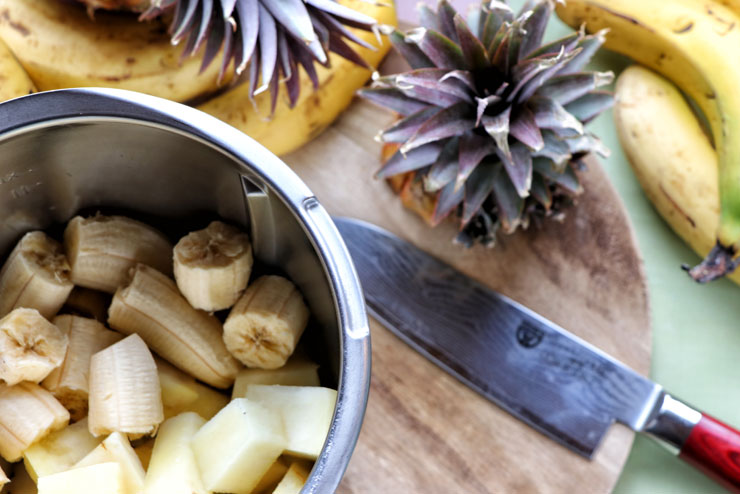 - Die Ananas und die Banane zerkleinern, Stufe 10 für 30 Sekunden.