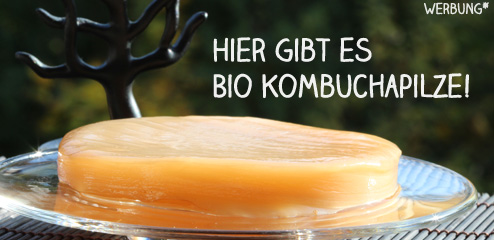 - zum Schluss einen 50g Bio Kombuchapilz mit 100ml Ansatzflüssigkeit – Meinen leckeren Kombucha Pilz in Bio Qualität bekommt ihr hier* von mir