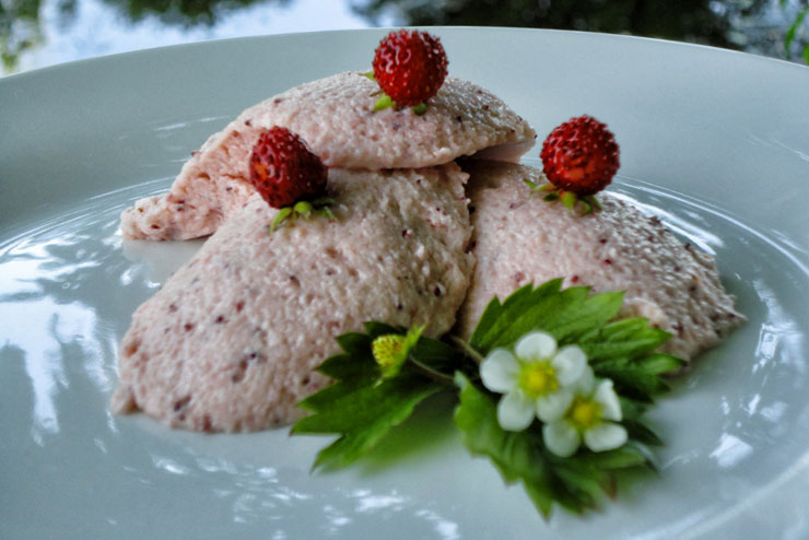 So süsse Beeren konnte ich einfach nicht zurücklassen. Ein Glück hatte ich in meiner Tasche einen kleinen Beutel, in den ich die Früchte ernten konnte… Zu Hause angekommen fand ich noch ein paar Erdbeeren aus meinem Garten im Kühlschrank. Perfekt für ein Beerendessert. Seht selbst was für einen Gaumenschmaus es mittags bei uns zum Nachtisch gab.