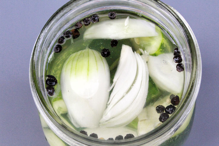 - Add cucumbers and fill in the salty water water on top until all cucumbers are covered
