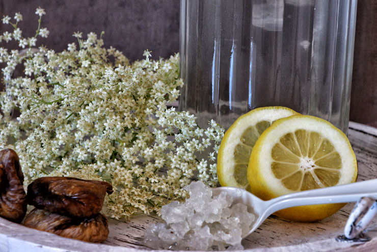 So now we can start with our first water kefir cold batch recipe. Here comes my favorite one: elderflower cold batch with figs and citrus