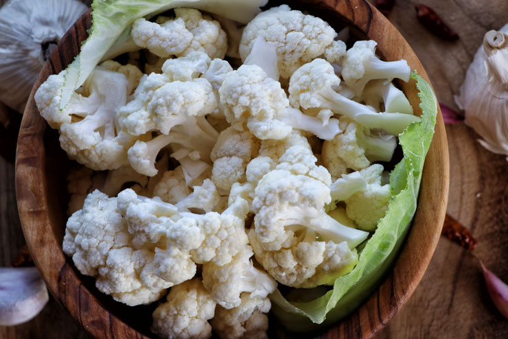 Wir essen den Blumenkohl so, ohne erhitzen. So bleiben die Mikroorganismen am Leben:-)