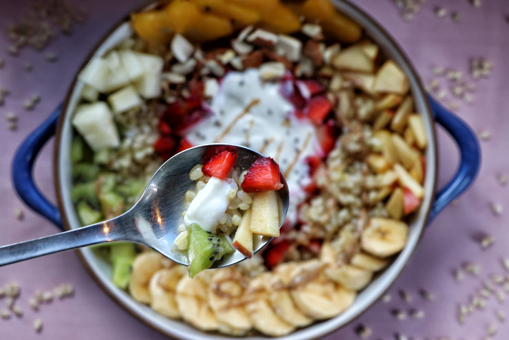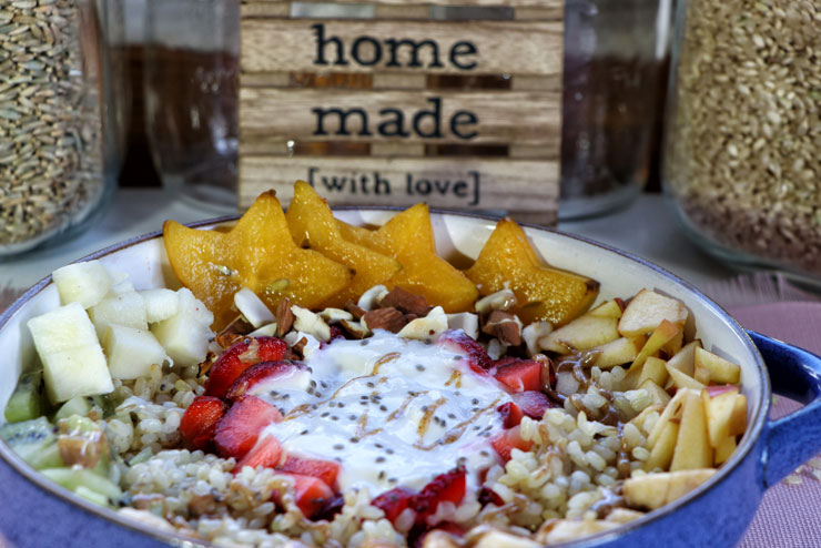 Tipp: Solltest Du zu den Langschläfern gehören, kannst Du den Reis auch ganz einfach schon am Vortag kochen und mit Deinem eigenen Bio-Milchkefir über Nacht im Kühlschrank stehen lassen. Morgens dann nur noch die frischen Früchte, Mandeln und das Mandelmuß hinzufügen. Los geht’s zur Arbeit…