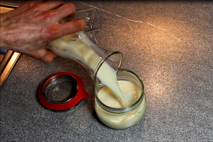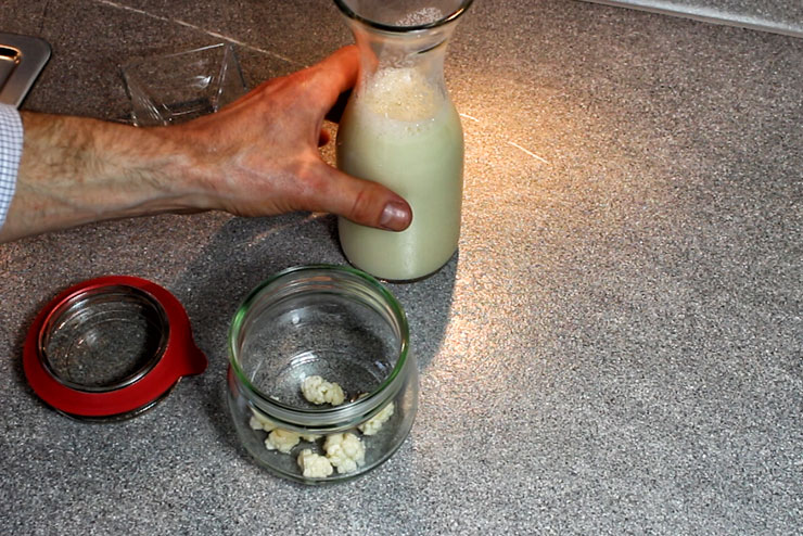 - Kefirknollen und Sojamilch in das Gärgefäß geben.