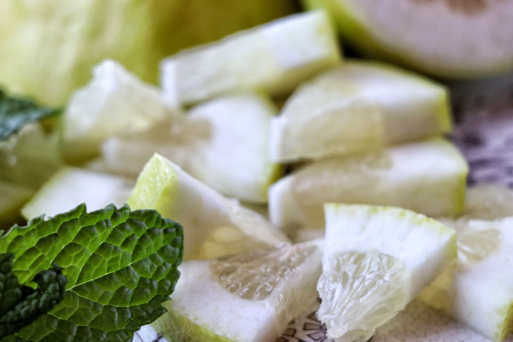 - Die Zitrone waschen, in Scheiben schneiden und die Scheiben in achtel Stücke schneiden.