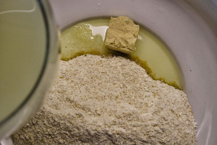 - Die Zutanten für den Teig in einer großen Rührschüssel vermischen und entweder mit den Händen oder einem flinken Küchenhelfer kneten.