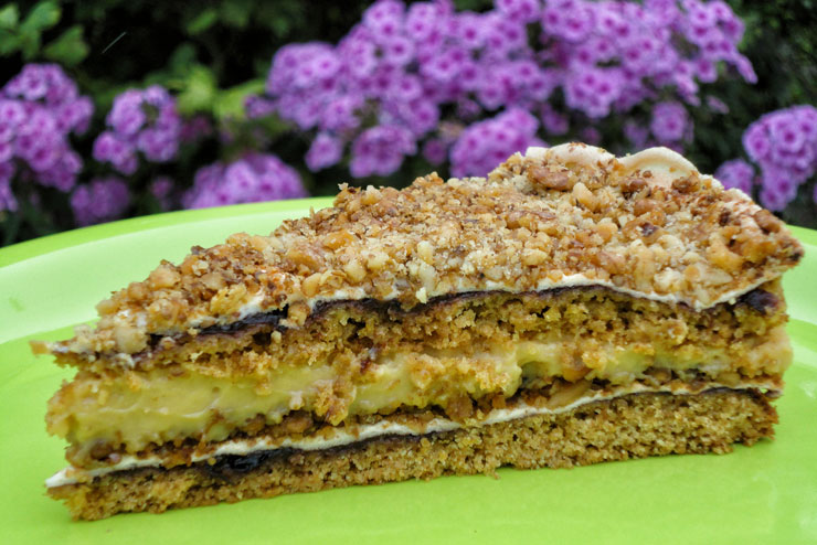 - Die beiden Kuchenböden mit dem Pflaumenmus bestreichen.
