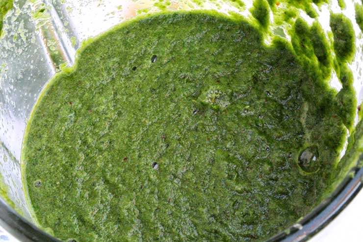 - Grünkohl, Petersilie und Rucola waschen und klein scheiden