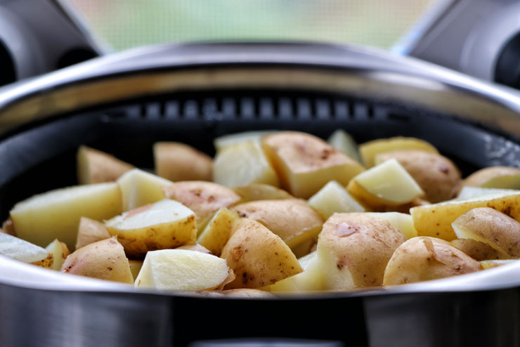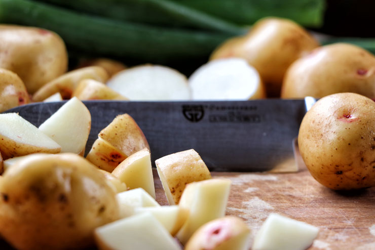 - Die Kartoffeln waschen und in kleine Stücken / Scheiben schneiden.